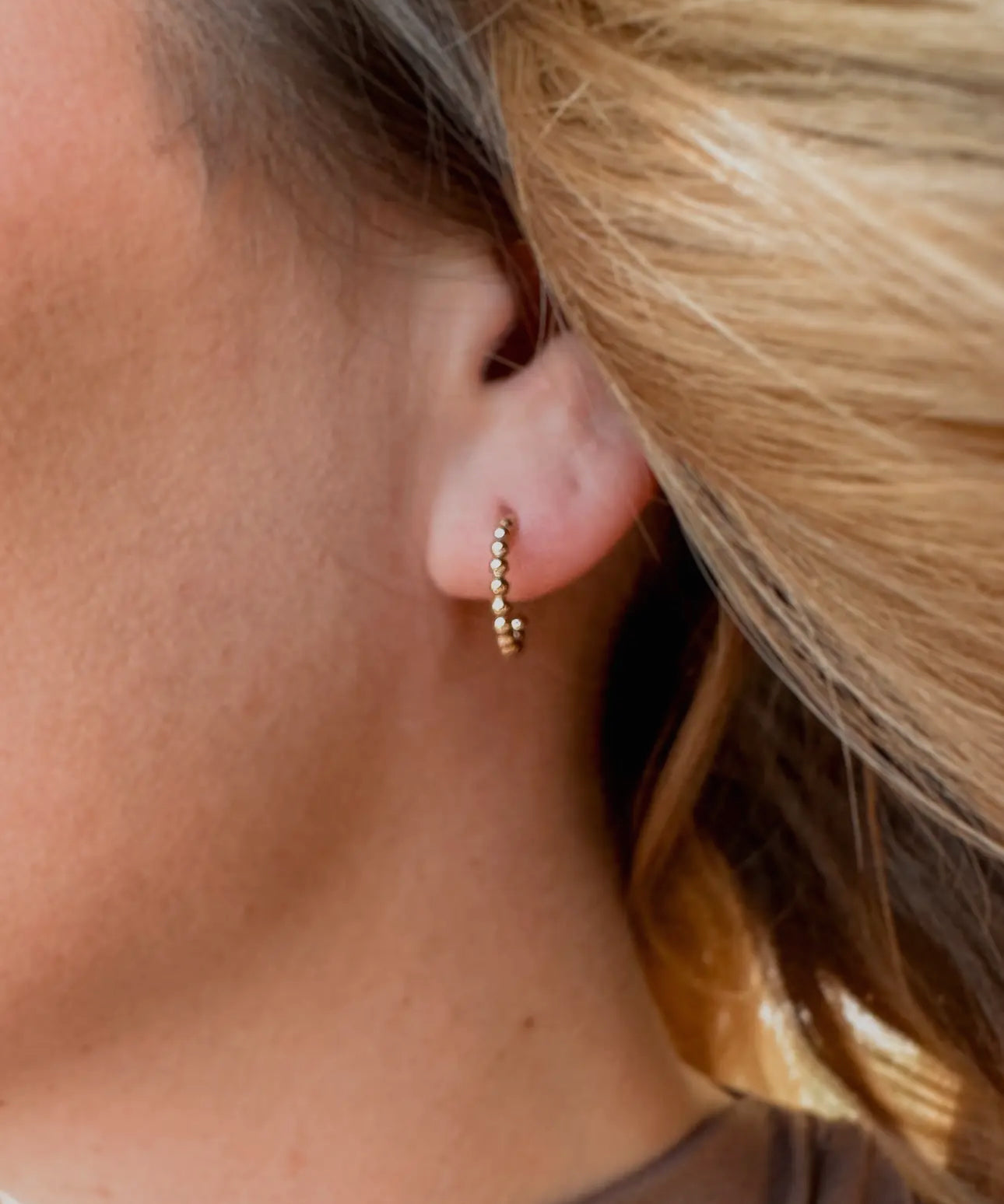 These 17mm Pebble Hoop Stud Earrings are a super glamorous while still being perfect for everyday! Available in Sterling Silver and 14k Gold Fill.