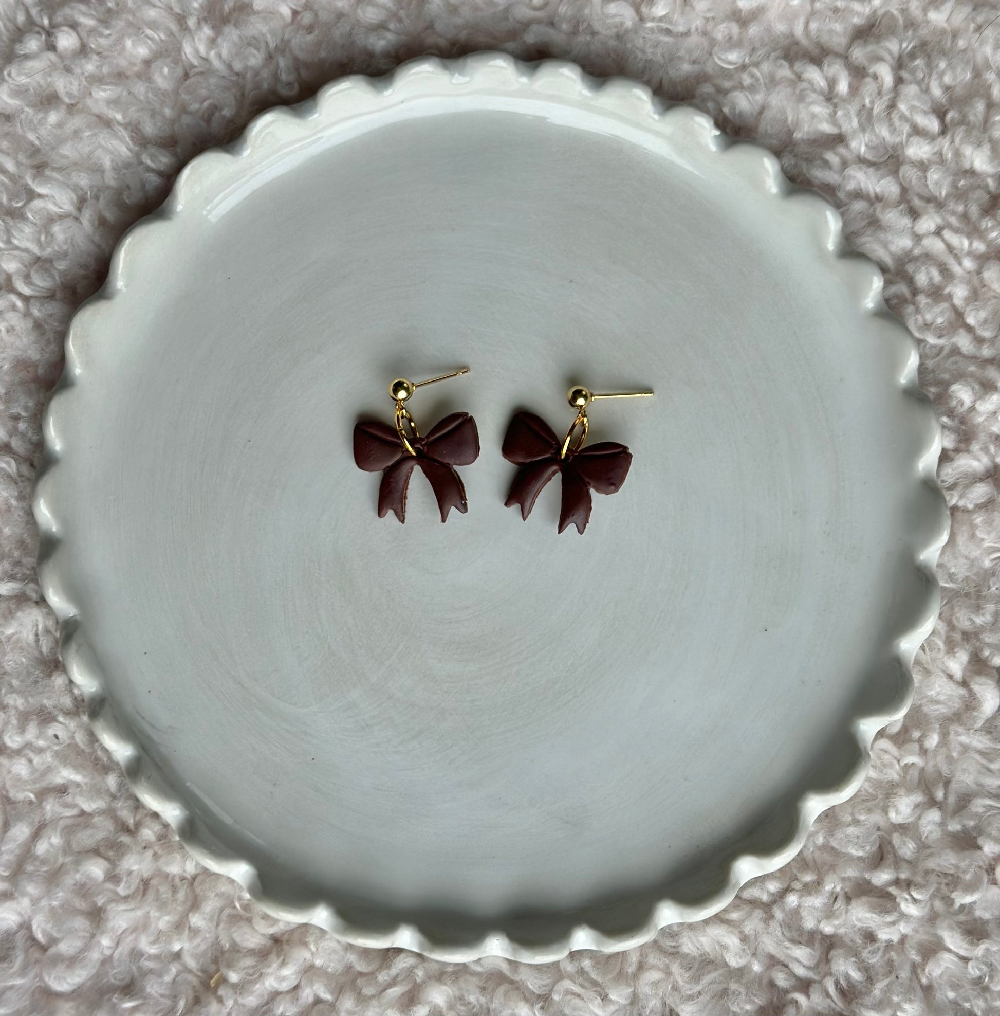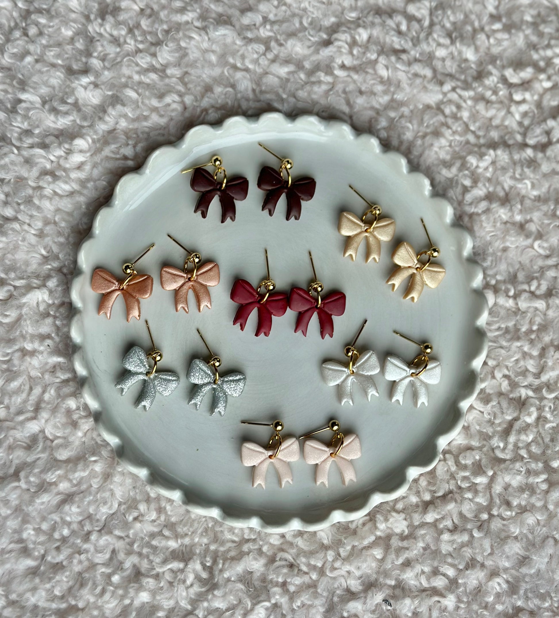 materials: lightweight polymer clay, stainless steel/nickel free and gold plated earring posts