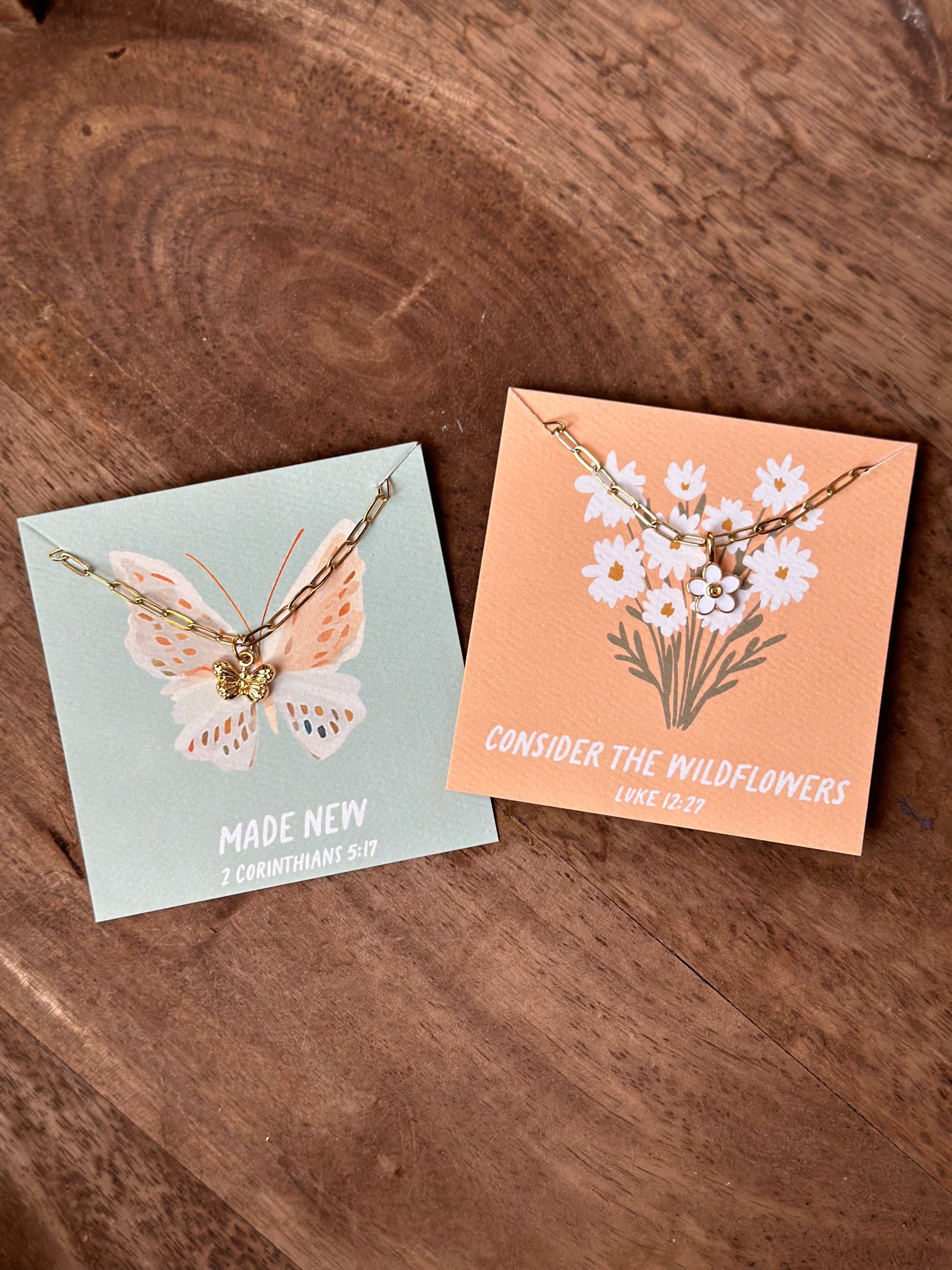 Flower Charm or butterfly charm on a 16-18" mini paperclip chain