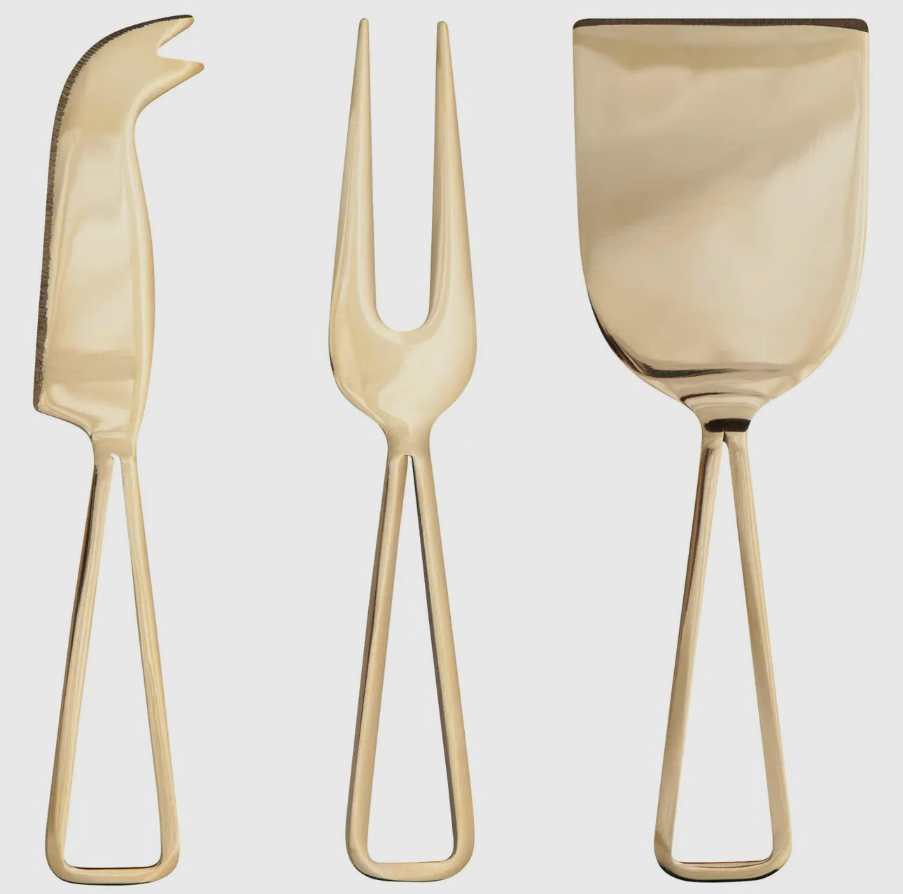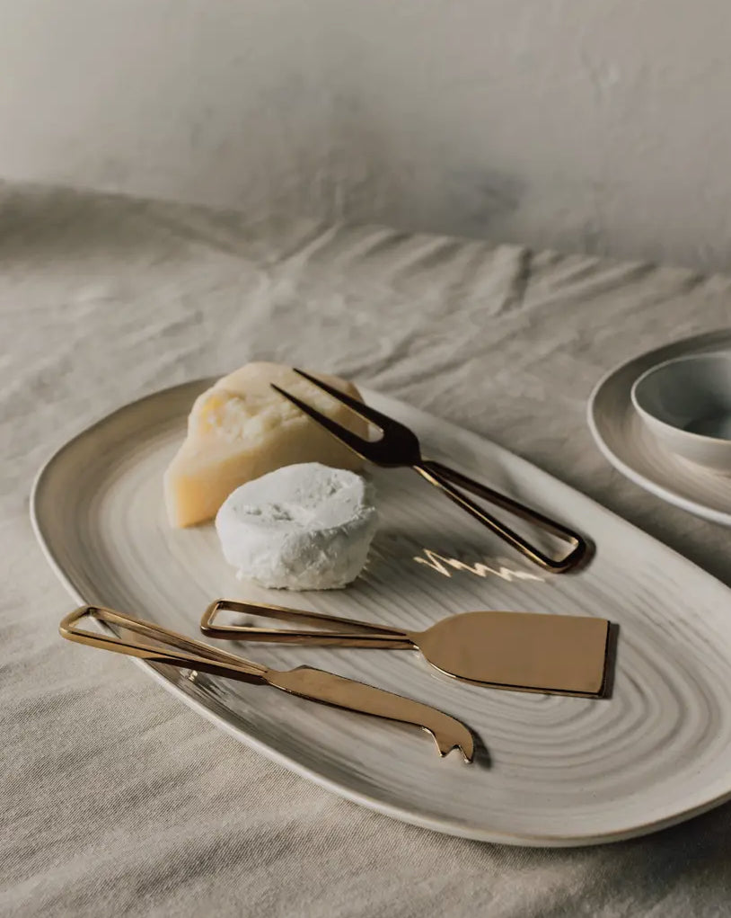 Moving effortlessly from a casual cheese tray to a more formal table setting, this set of gold steel serveware offers timeless style and enduring versatility.