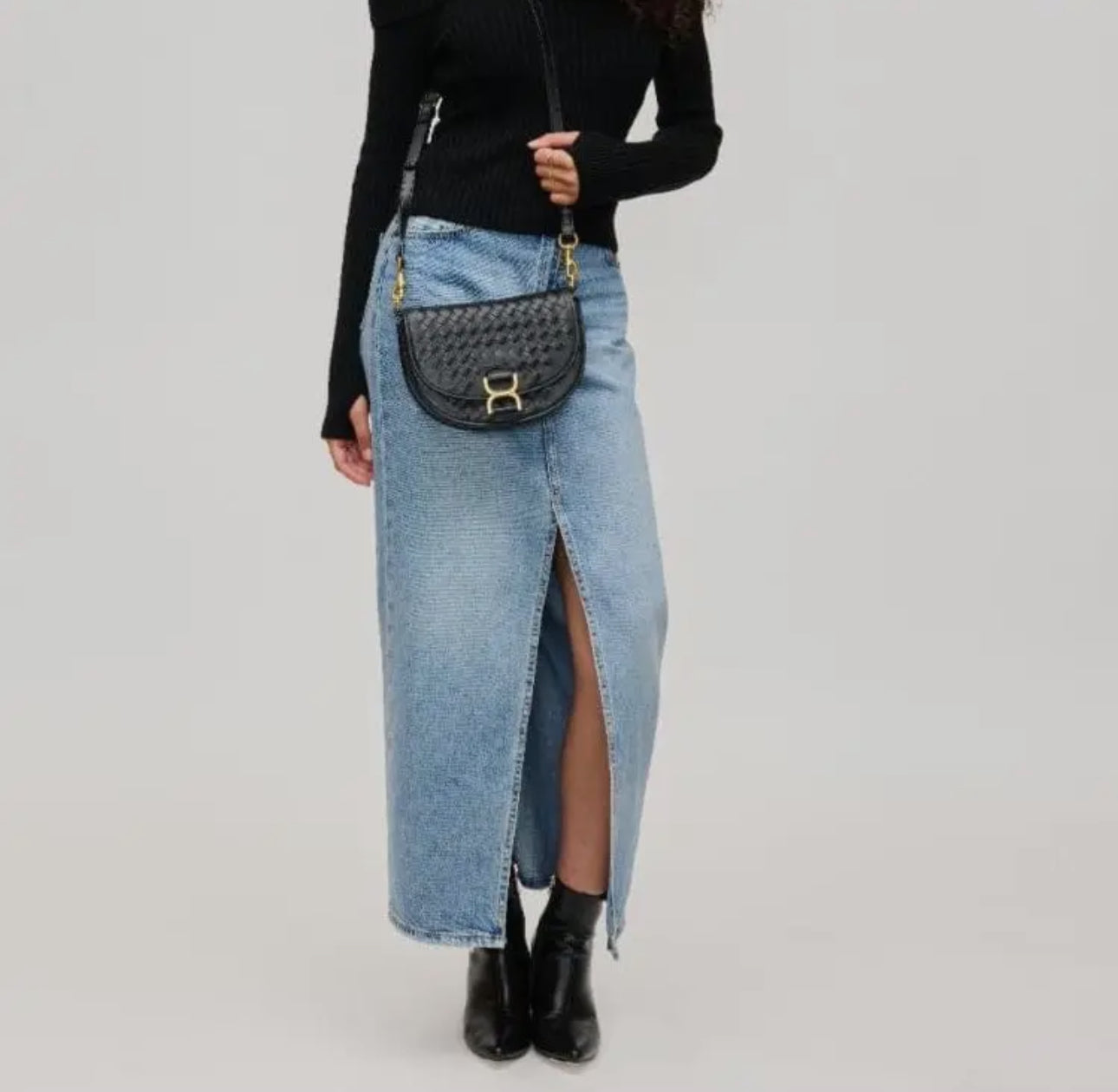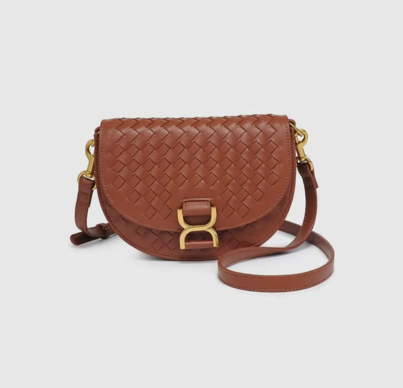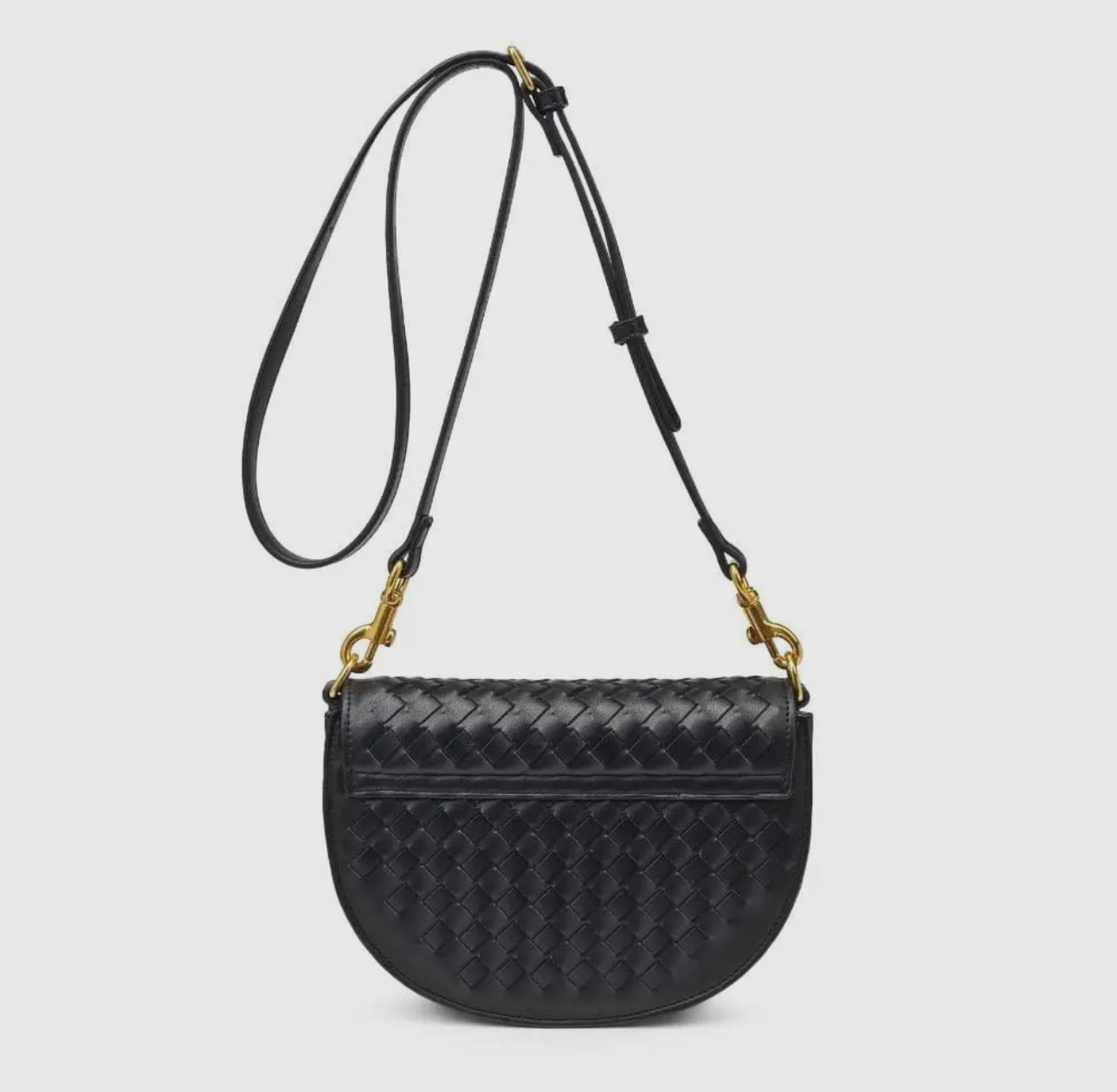 - Exterior Details: Woven Design, Buckle Detail, Gold Hardware,