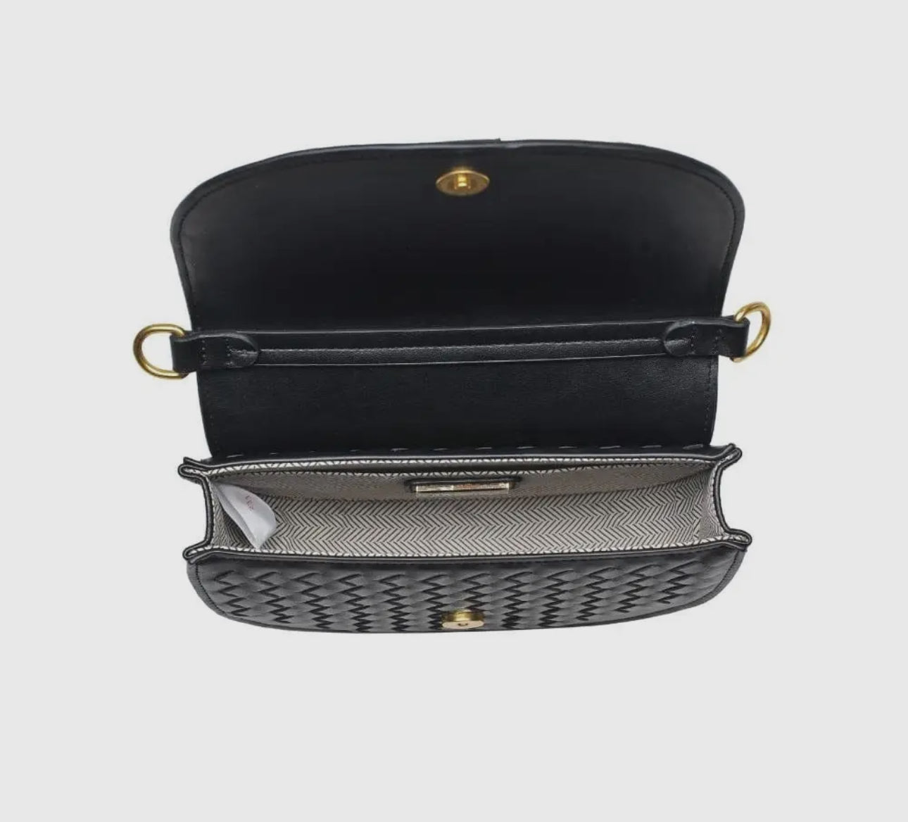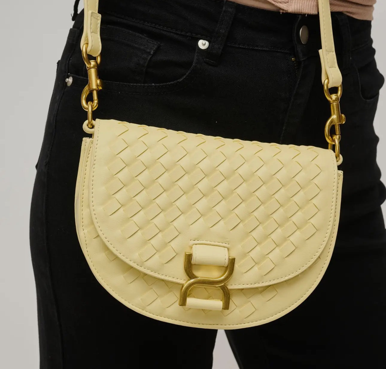 This crossbody is here to up your accessory game with its woven design and buckle detail! Gold hardware adds a touch of glam, while the adjustable strap keeps things comfy and versatile. With its printed fabric lining and handy zip pocket, style and function are totally in sync