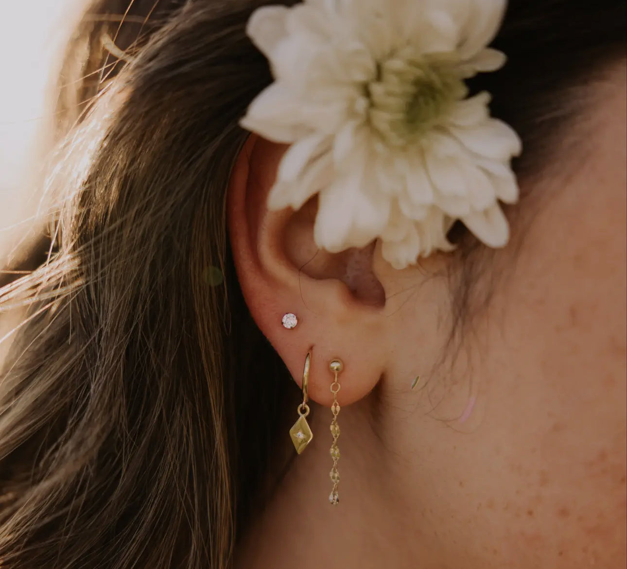 The Diamond Flat Back Studs are a must-have for any ear stack. Featuring a high-quality cubic zirconia that adds effortless shine to any outfit! Whether you're dressing up or keeping it casual, it's the kind of piece you'll reach for every day.