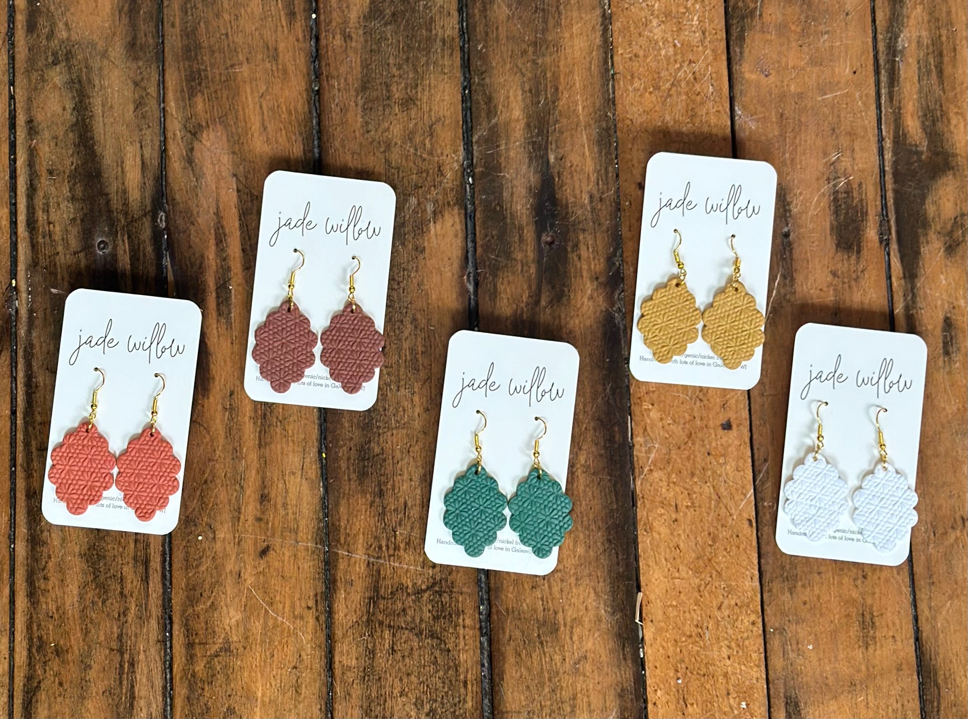materials: lightweight polymer clay, stainless steel/nickel free and gold plated earring posts