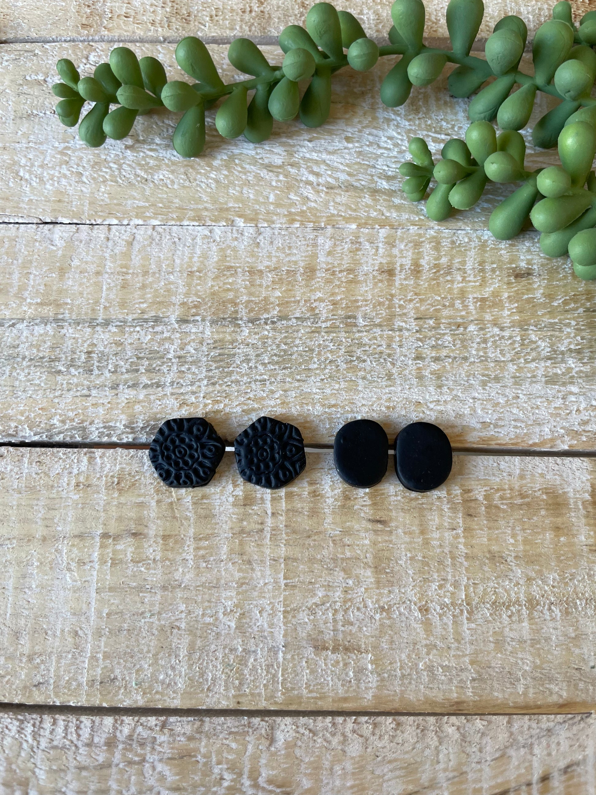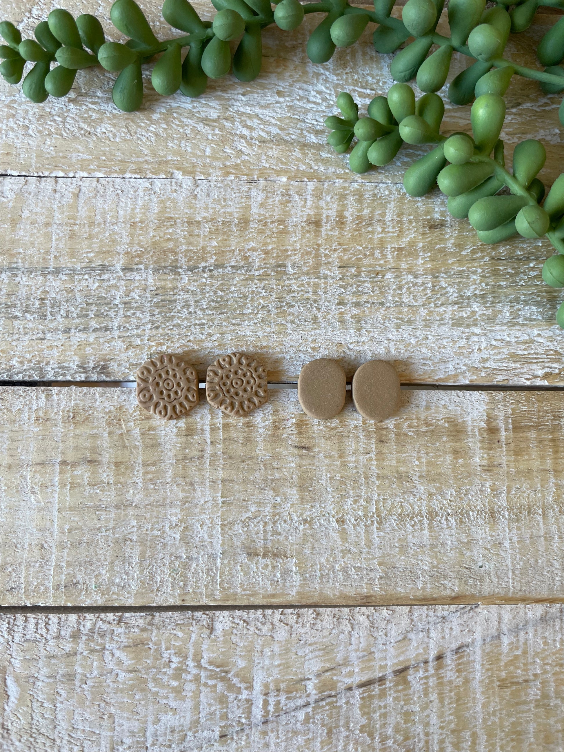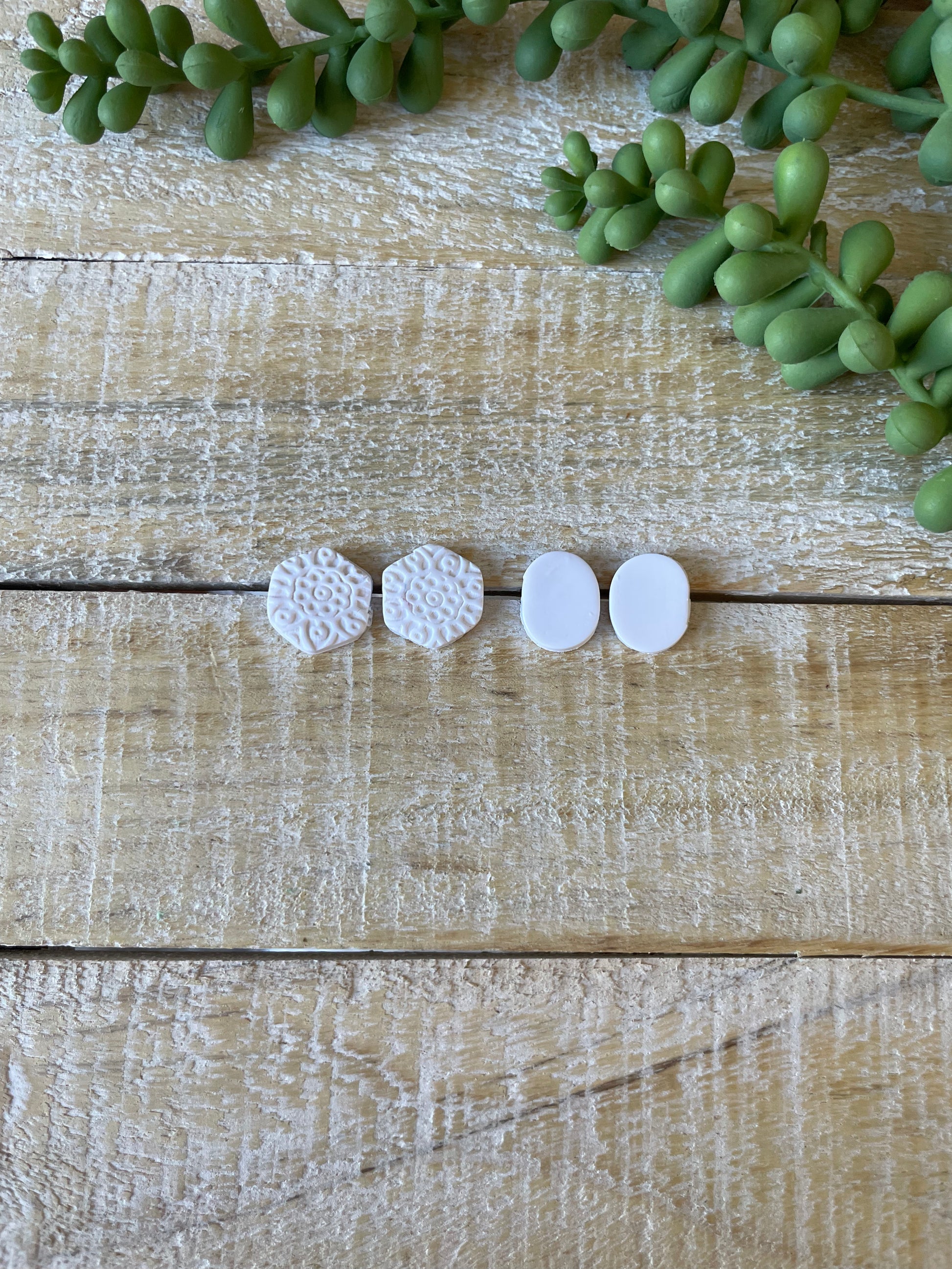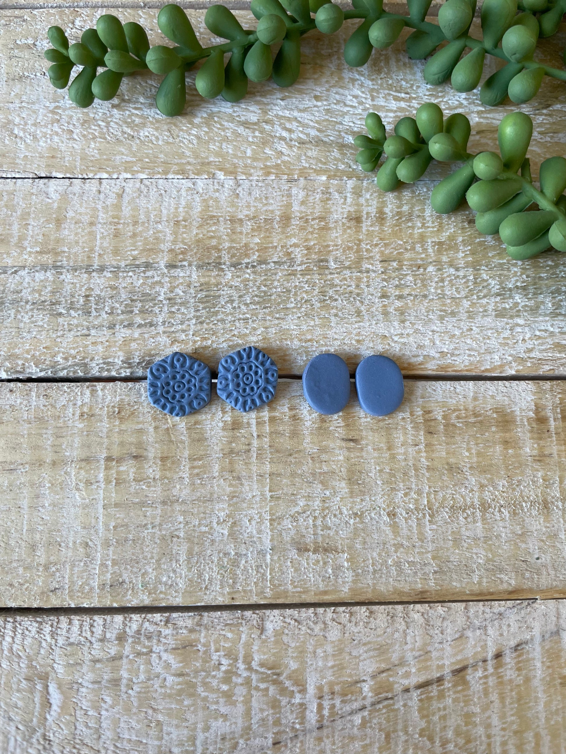 materials: lightweight polymer clay, stainless steel/nickel free and gold plated earring posts
