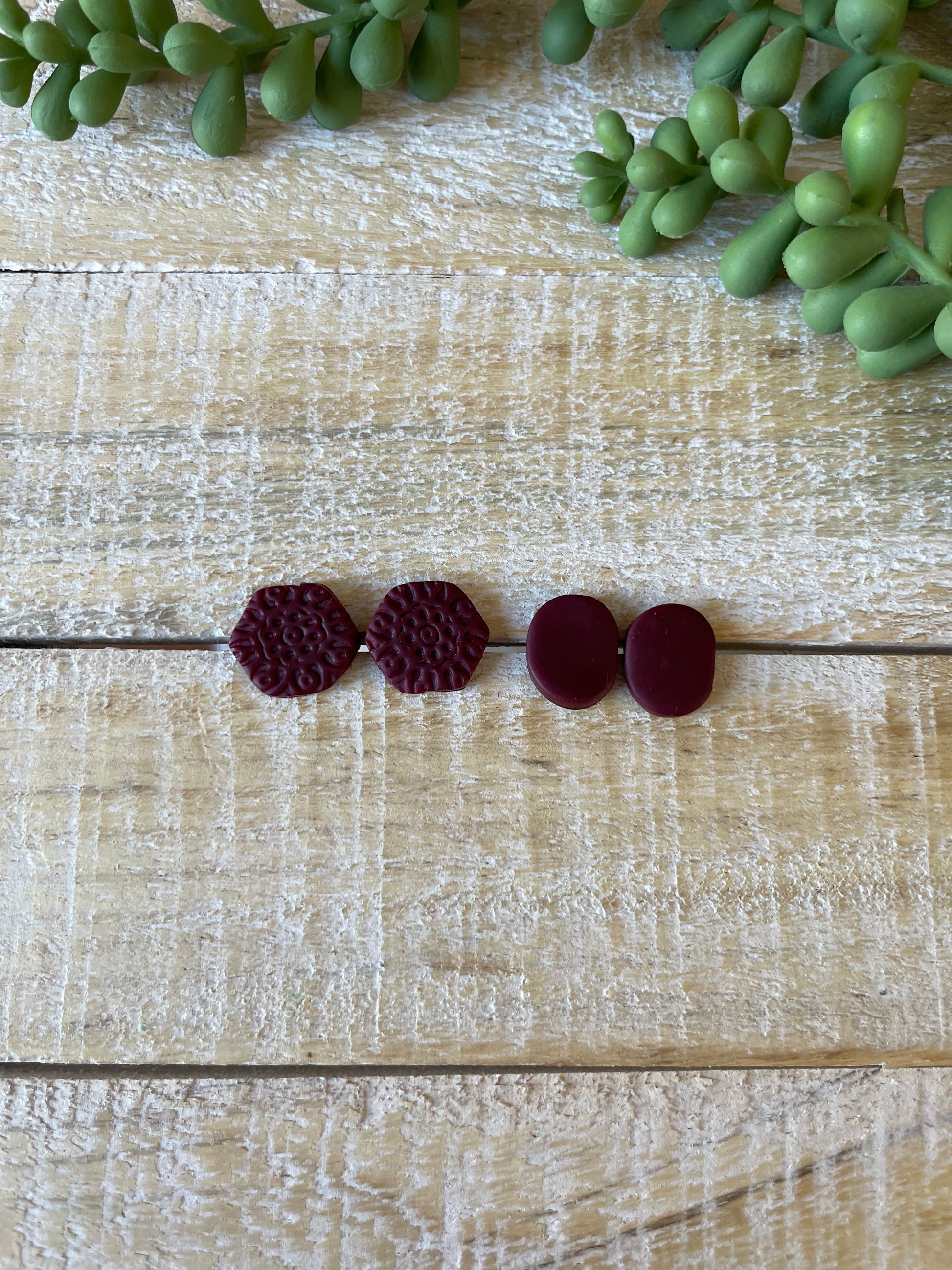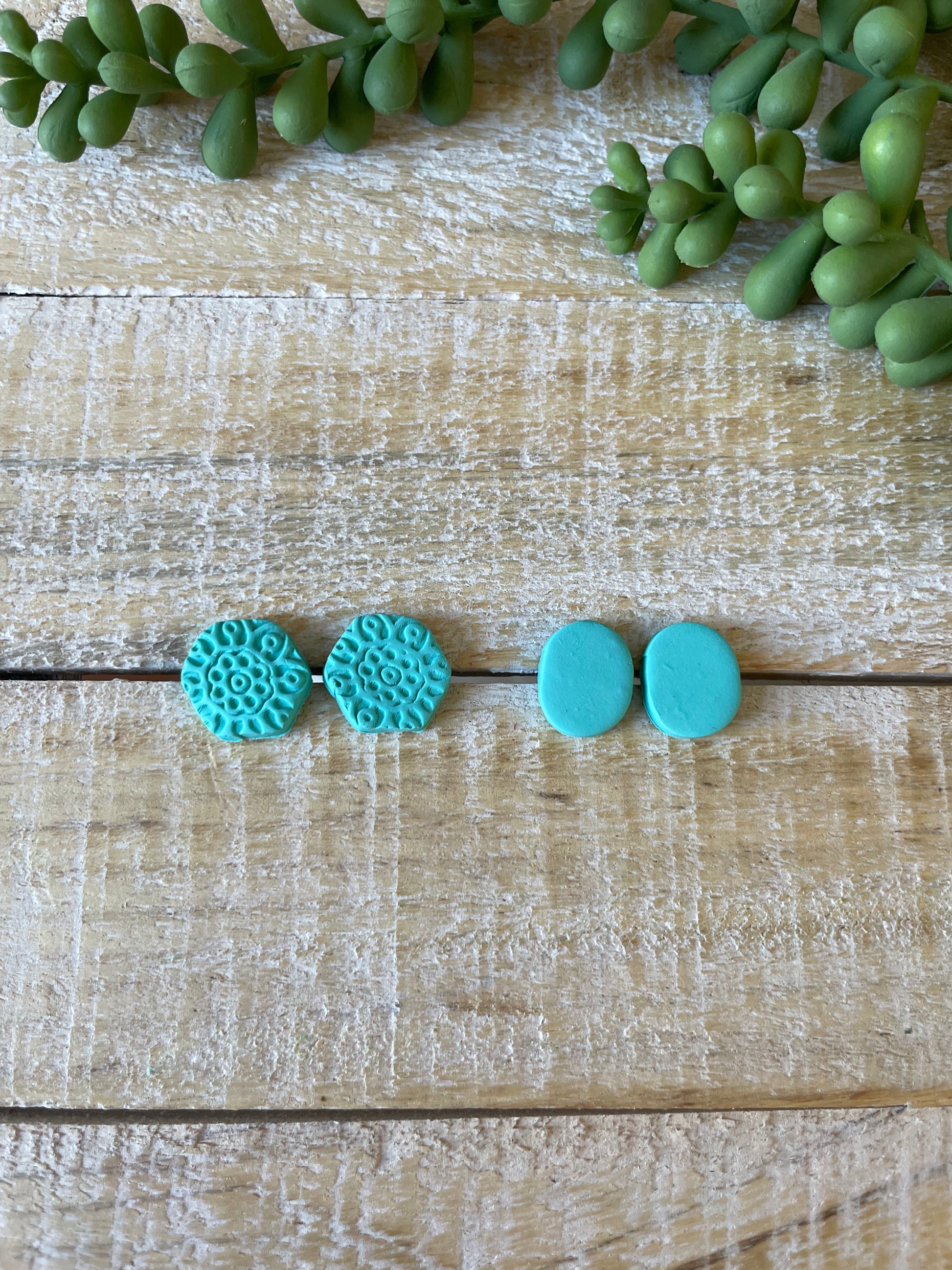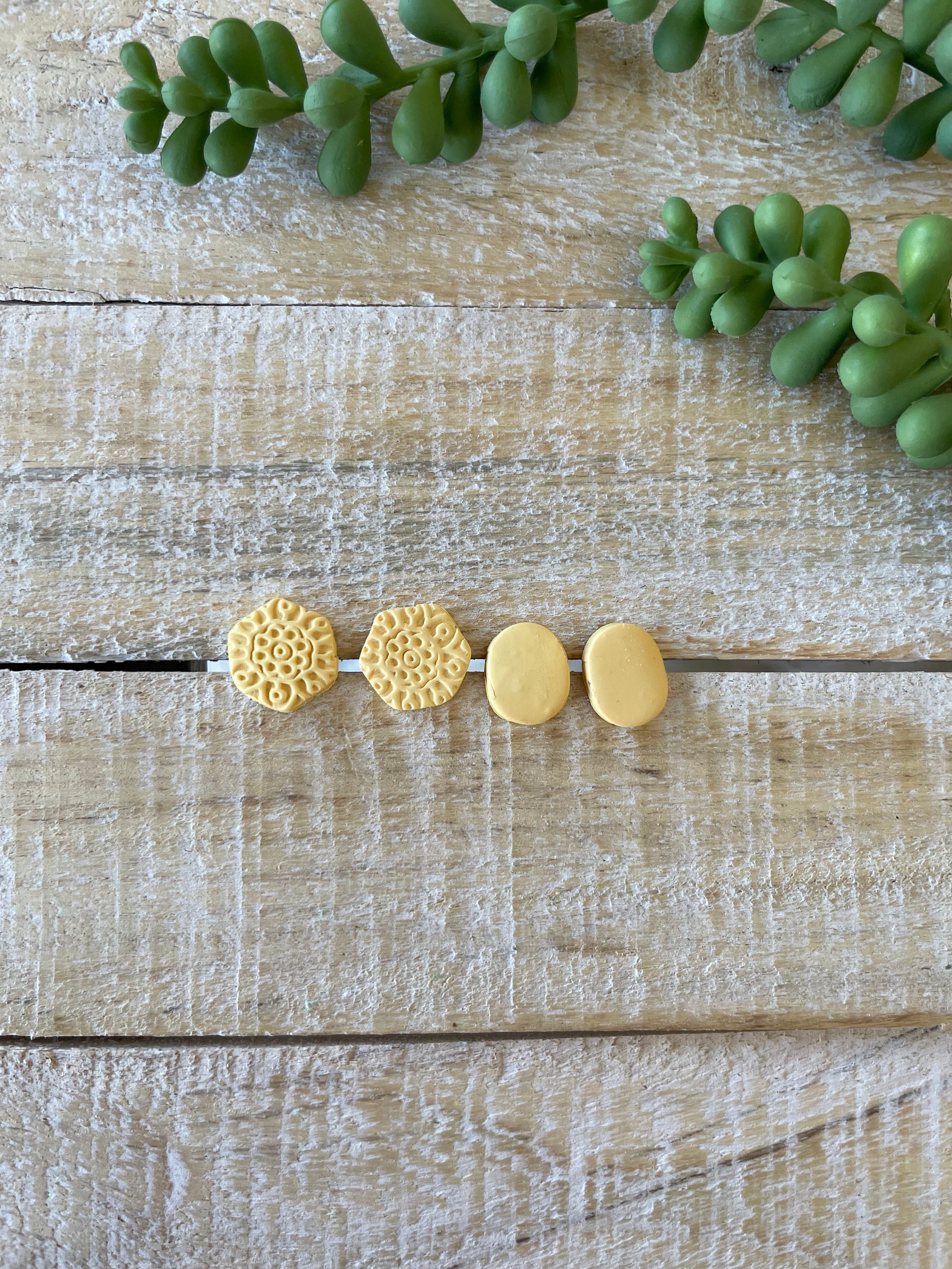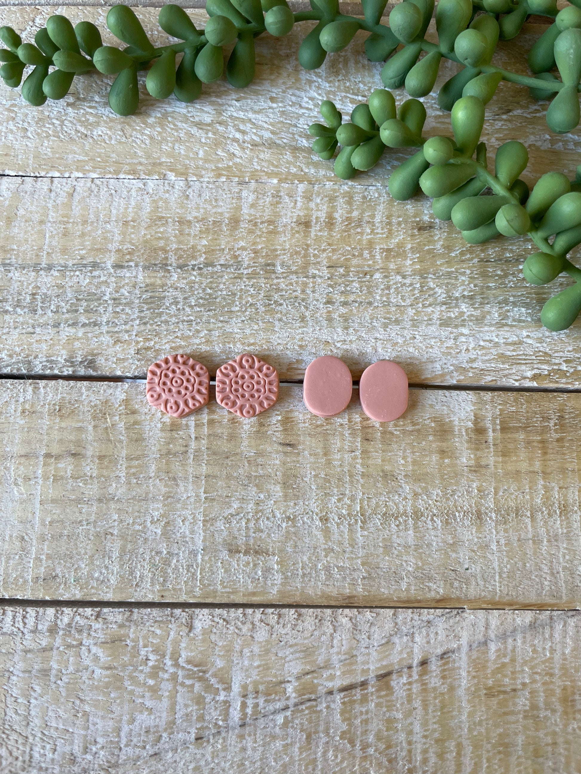 materials: lightweight polymer clay, stainless steel/nickel free and gold plated earring posts